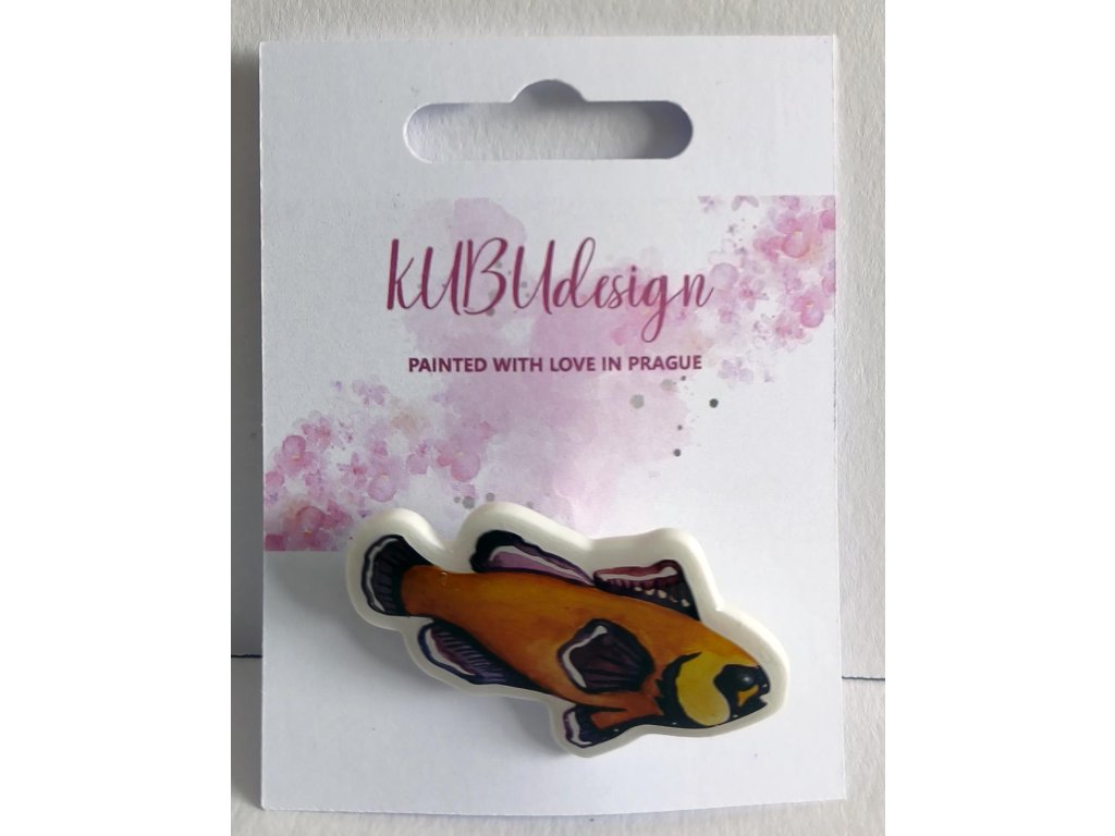 Originální malovaná brož na 3D tištěném základu s ochranou z pryskyřice.
