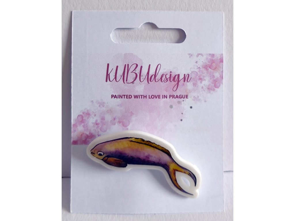 Originální malovaná brož na 3D tištěném základu s ochranou z pryskyřice.