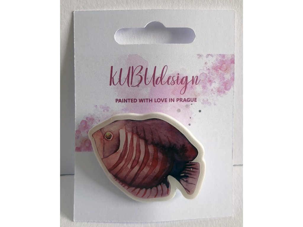Originální malovaná brož na 3D tištěném základu s ochranou z pryskyřice.