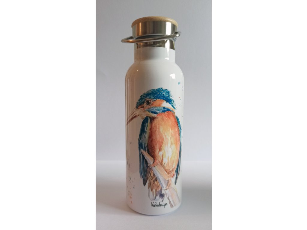 Termoska s bambusovým víčkem a autorskou kresbou